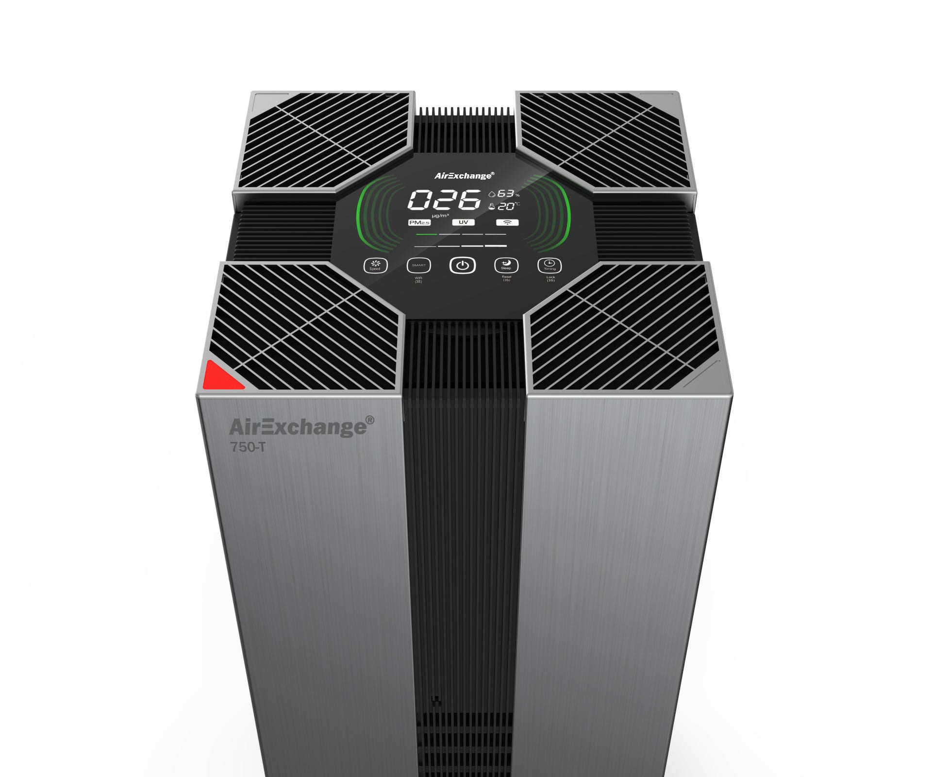 De AirExchange® 750-T is voorzien van slimme sensoren die de luchtkwaliteit tientallen keren per seconde meten om zo schadelijke, verontreinigde stoffen en andere gevaarlijke deeltjes te detecteren.